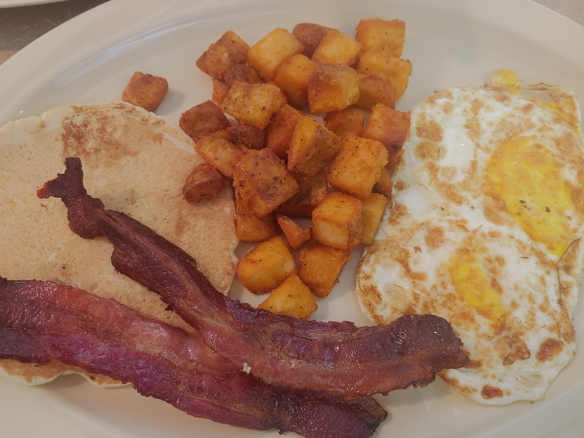 We stopped in at 9:00 on a Saturday morning during their second week in business. We miss the diners that we used to frequent when we lived in the Northeast, so were eager to give Ma's a try. The menu is exactly what you'd expect from a local diner. I wanted to try a few things (plus I was hungry) so I went with the build your own breakfast: 2 eggs, scrambled; biscuit which the server said was not made in house but was baked in house; sausage party; grits; and 3 pancakes. The eggs were expertly cooked, better than I've had at most places in town. The grits could have used salt and, candidly, were not very warm. The biscuit and sausage were ok. The pancakes, however, were excellent. The room has 7 tables and 8 seats at the counter. So you will likely wait a little at busy times. We loved the vintage turntable console as you walk in, and the functioning vintage turntable in the back playing tunes. And one of the cutest touches was the tiny milk bottles that they give you with the coffee. You can squeeze or just the amount you need.